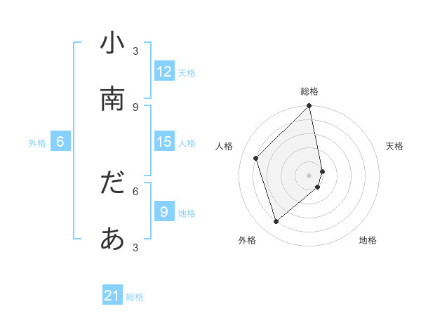 小南 だあさんの総格は21画の5点!