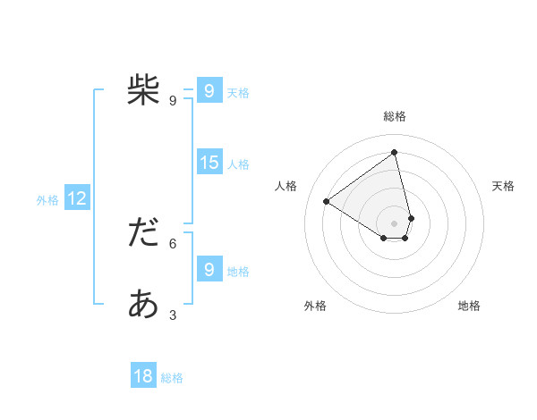 柴 だあさんの総格は18画の4点!