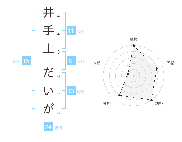 井手上 だいがさんを姓名の画数から五運を鑑定