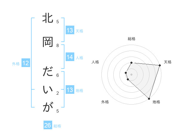 北岡 だいがさんの地格は13画の5点!