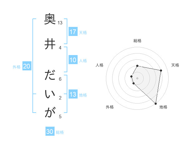 奥井 だいがさんの地格は13画の5点!