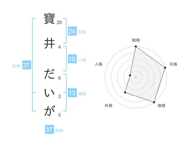 寶井 だいがさんを姓名の画数から五運を鑑定