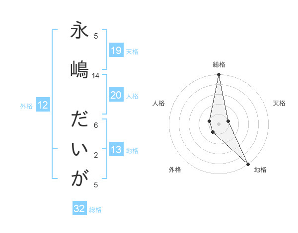 永嶋 だいがさんを姓名の画数から五運を鑑定