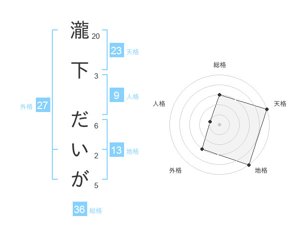 瀧下 だいがさんを姓名の画数から五運を鑑定