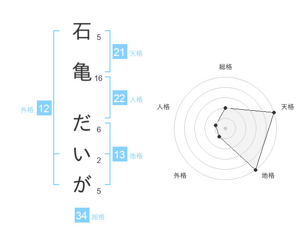 石亀 だいがさんを姓名の画数から五運を鑑定