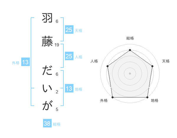 羽藤 だいがさんを姓名の画数から五運を鑑定