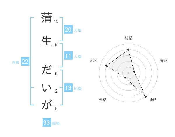 蒲生 だいがさんを姓名の画数から五運を鑑定