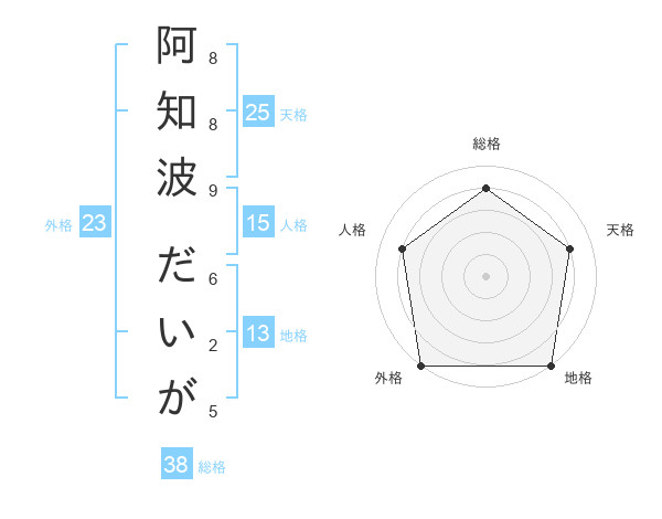 阿知波 だいがさんの外格は23画の5点!