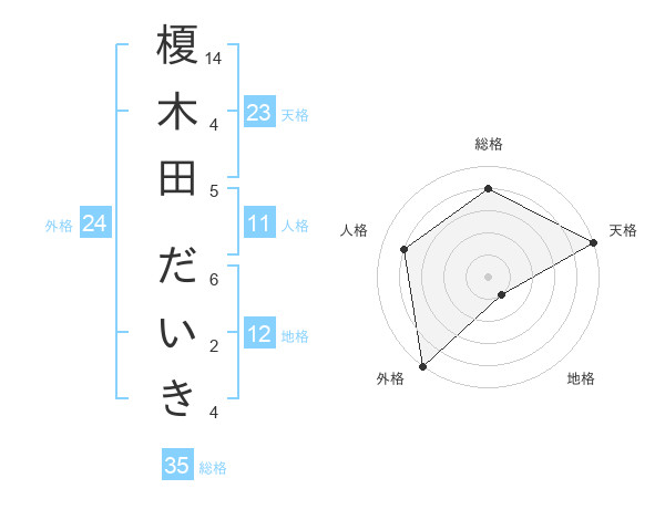 榎木田 だいきさんを姓名の画数から五運を鑑定