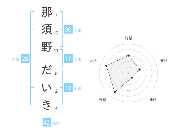 那須野 だいきさんを姓名の画数から五運を鑑定