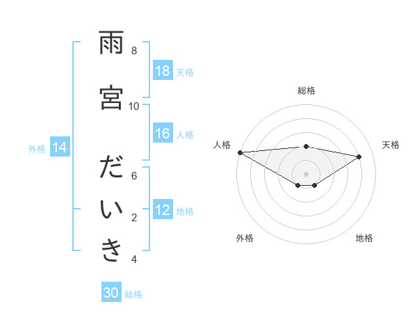 雨宮 だいきさんの総格は30画の2点!