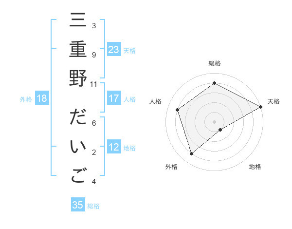 三重野 だいごさんの天格は23画の5点!