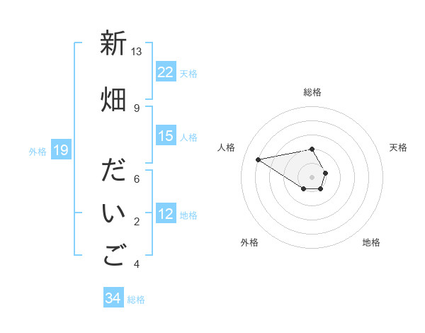 新畑 だいごさんを姓名の画数から五運を鑑定