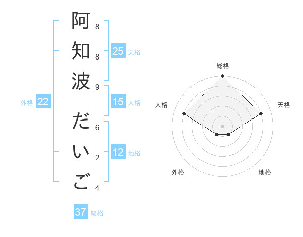 阿知波 だいごさんの総格は37画の5点!