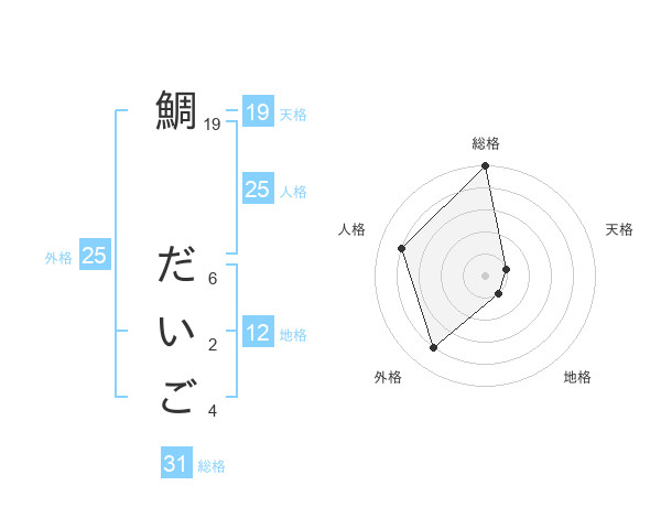 鯛 だいごさんの総格は31画の5点!
