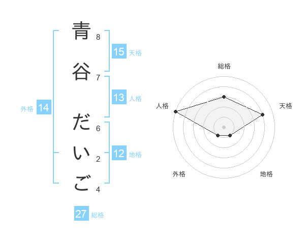 青谷 だいごさんの天格は15画の4点!
