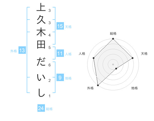 上久木田 だいしさんの外格は13画の5点!