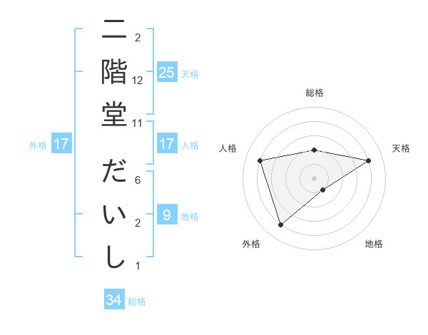 二階堂 だいしさんの外格は17画の4点!