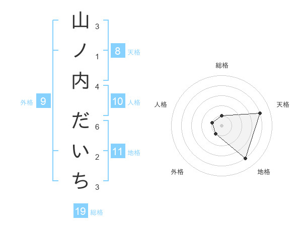 山ノ内 だいちさんを姓名の画数から五運を鑑定