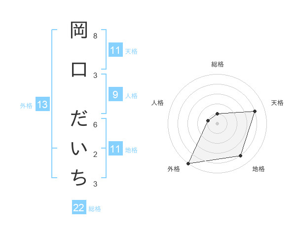 岡口 だいちさんの外格は13画の5点!