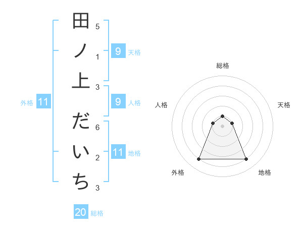 田ノ上 だいちさんを姓名の画数から五運を鑑定