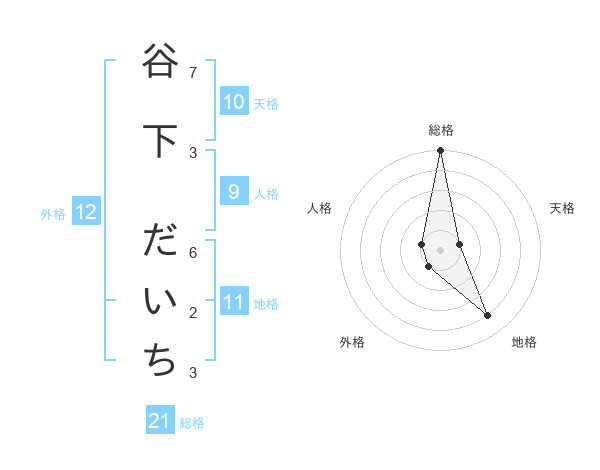 谷下 だいちさんの総格は21画の5点!