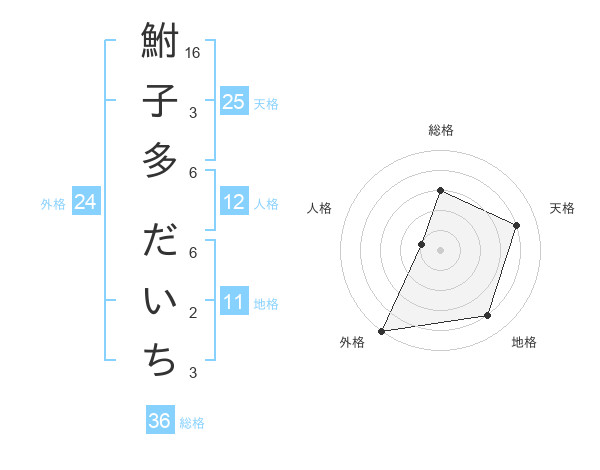 鮒子多 だいちさんを姓名の画数から五運を鑑定
