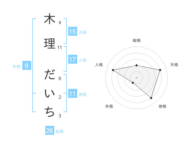 木理 だいちさんの天格は15画の4点!