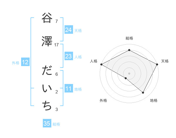 谷澤 だいちさんを姓名の画数から五運を鑑定