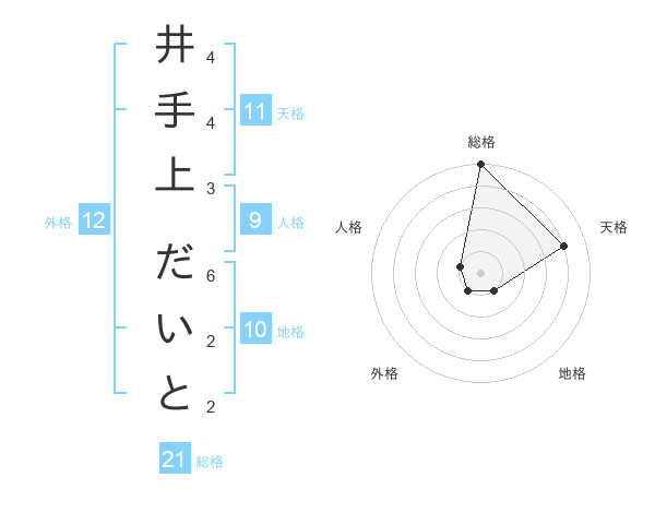 井手上 だいとさんを姓名の画数から五運を鑑定