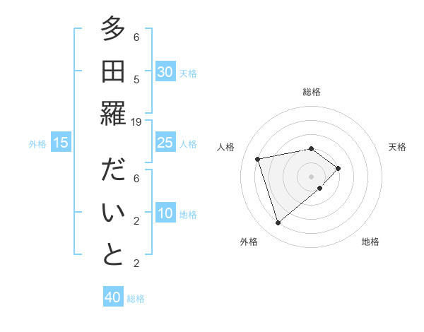 多田羅 だいとさんの外格は15画の4点!
