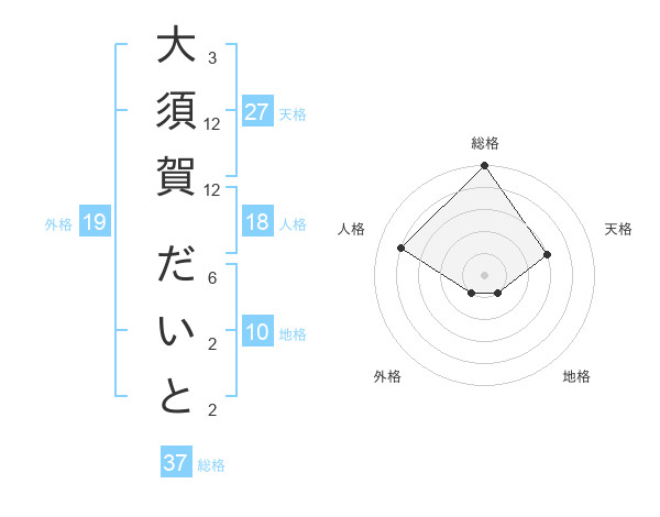 大須賀 だいとさんの総格は37画の5点!