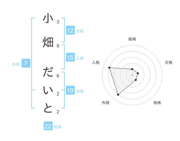 小畑 だいとさんを姓名の画数から五運を鑑定