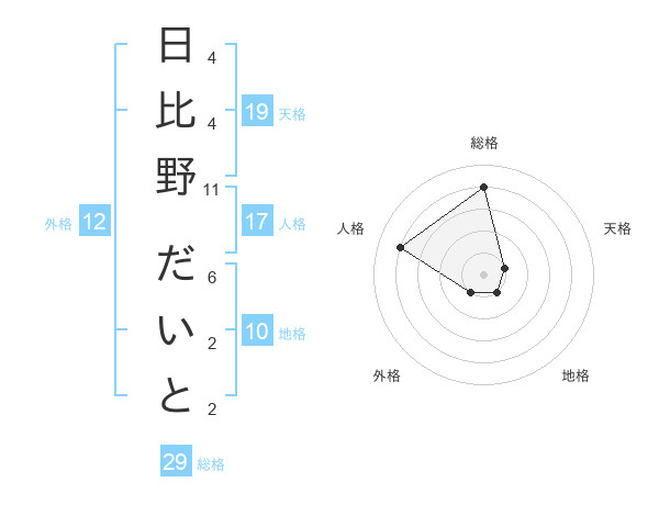 日比野 だいとさんを姓名の画数から五運を鑑定