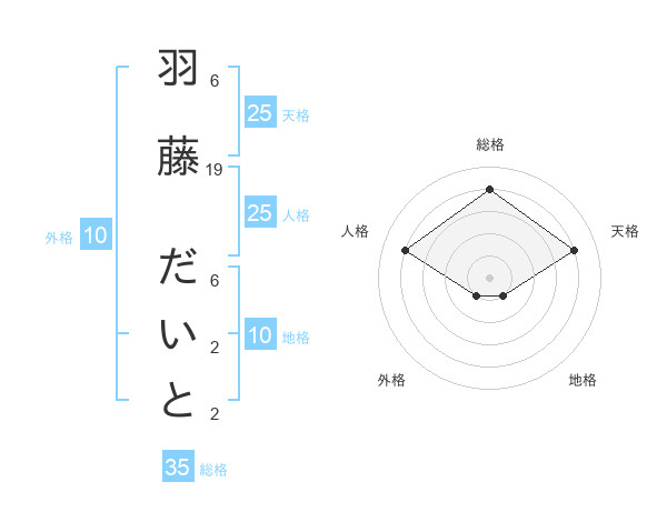 羽藤 だいとさんを姓名の画数から五運を鑑定