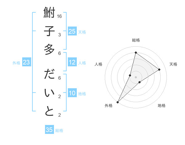 鮒子多 だいとさんを姓名の画数から五運を鑑定