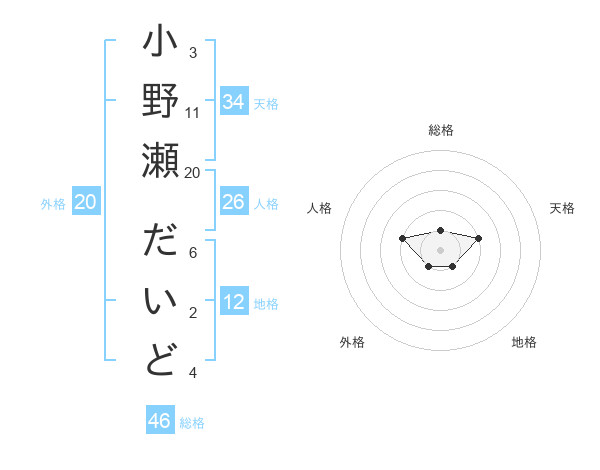 小野瀬 だいどさんを姓名の画数から五運を鑑定