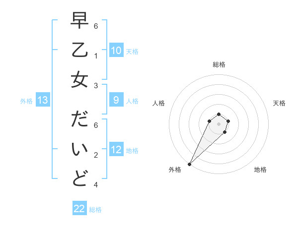 早乙女 だいどさんを姓名の画数から五運を鑑定