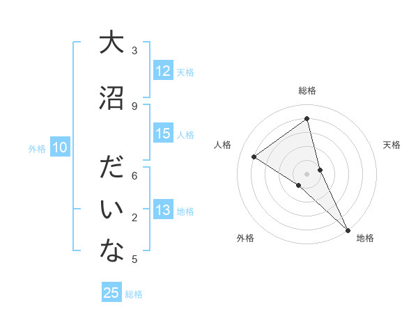 大沼 だいなさんの天格は12画の1点!