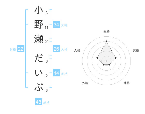 小野瀬 だいぶさんの名前の鑑定結果は!