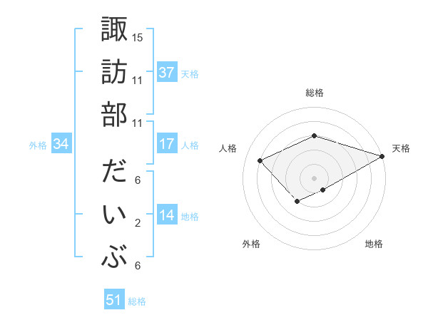 諏訪部 だいぶさんの総格は51画の3点!