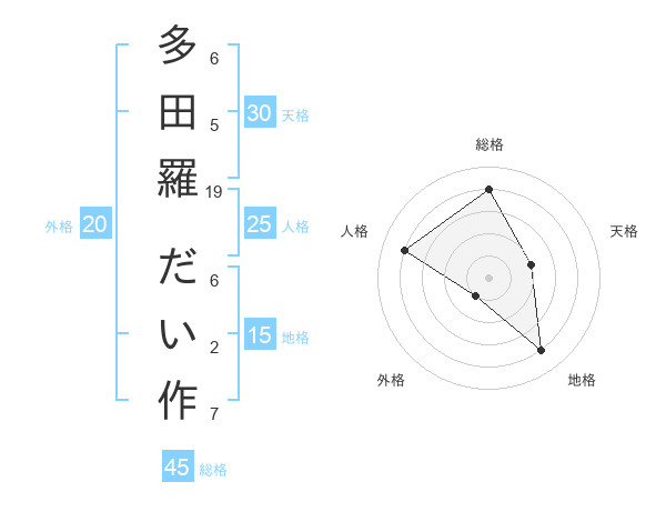 多田羅 だい作さんを姓名の画数から五運を鑑定