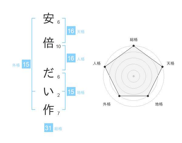安倍 だい作さんの総格は31画の5点!