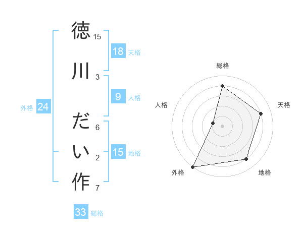 徳川 だい作さんを姓名の画数から五運を鑑定