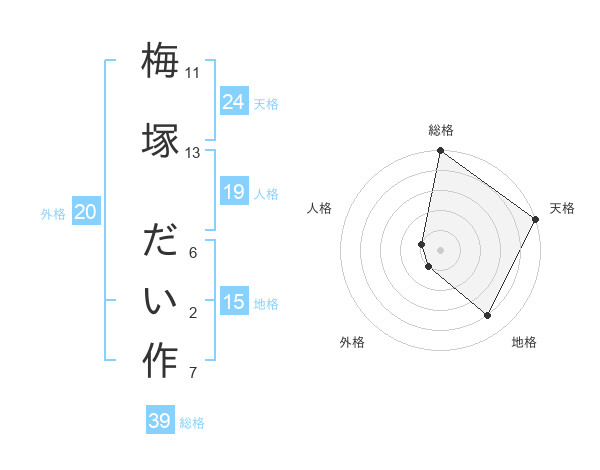 梅塚 だい作さんを姓名の画数から五運を鑑定