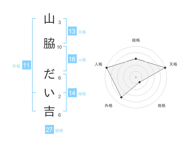 山脇 だい吉さんの総格は27画の3点