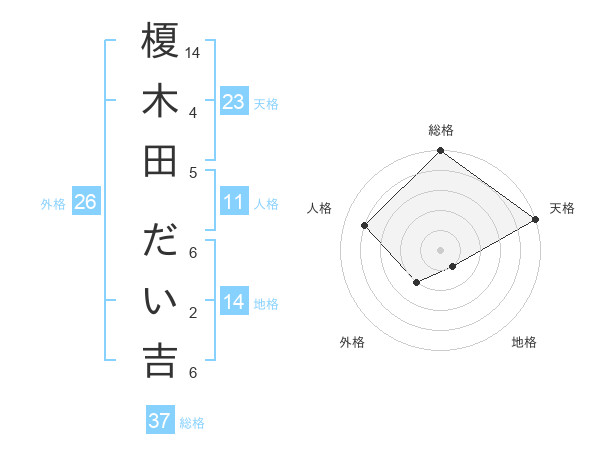 榎木田 だい吉さんを姓名の画数から五運を鑑定