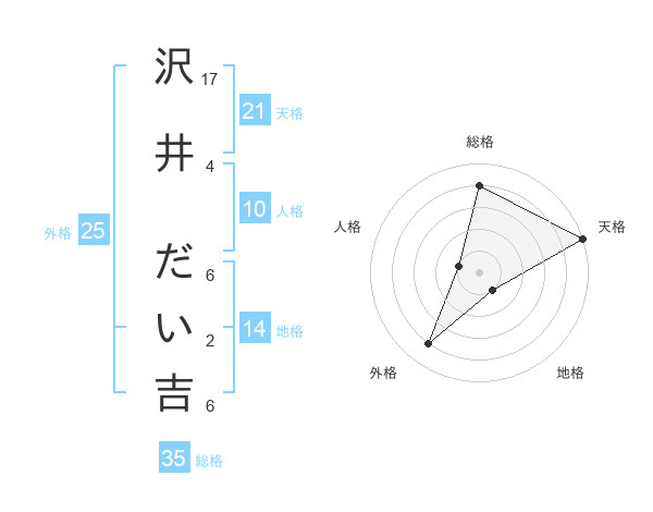 沢井 だい吉さんを姓名の画数から五運を鑑定