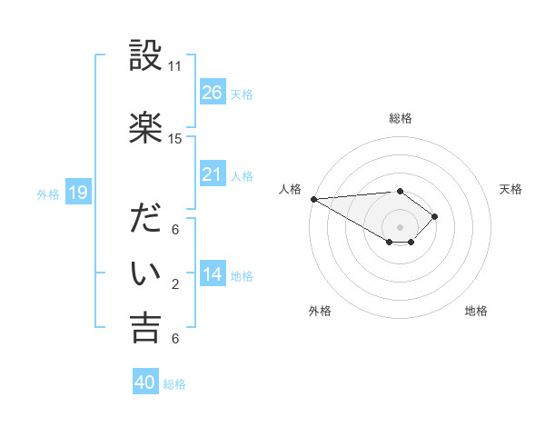 設楽 だい吉さんを姓名の画数から五運を鑑定