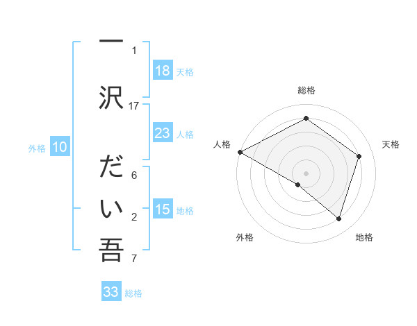 一沢 だい吾さんを姓名の画数から五運を鑑定